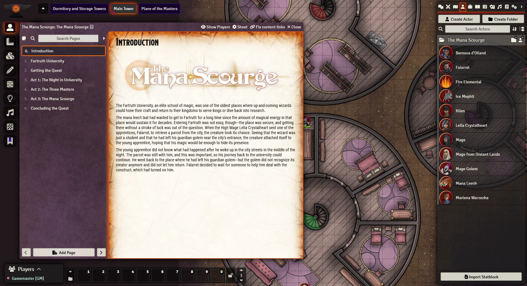 Manascourge is a one-shot adventure for a party of characters of level 9 where adventurers can stop a mysterious creature from wreacking havoc on Fartruth University. Will they be able to find out what is really happening in time and stop a magical catastrophe?
